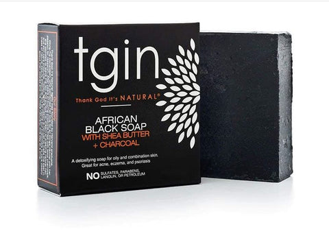 TGIN African Black Soap - a customer favorite since 2015. this is an economical and effective favorite for even the most sensitive skin types. The black hue comes from activated charcoal which has many skin benefits, click here for details.